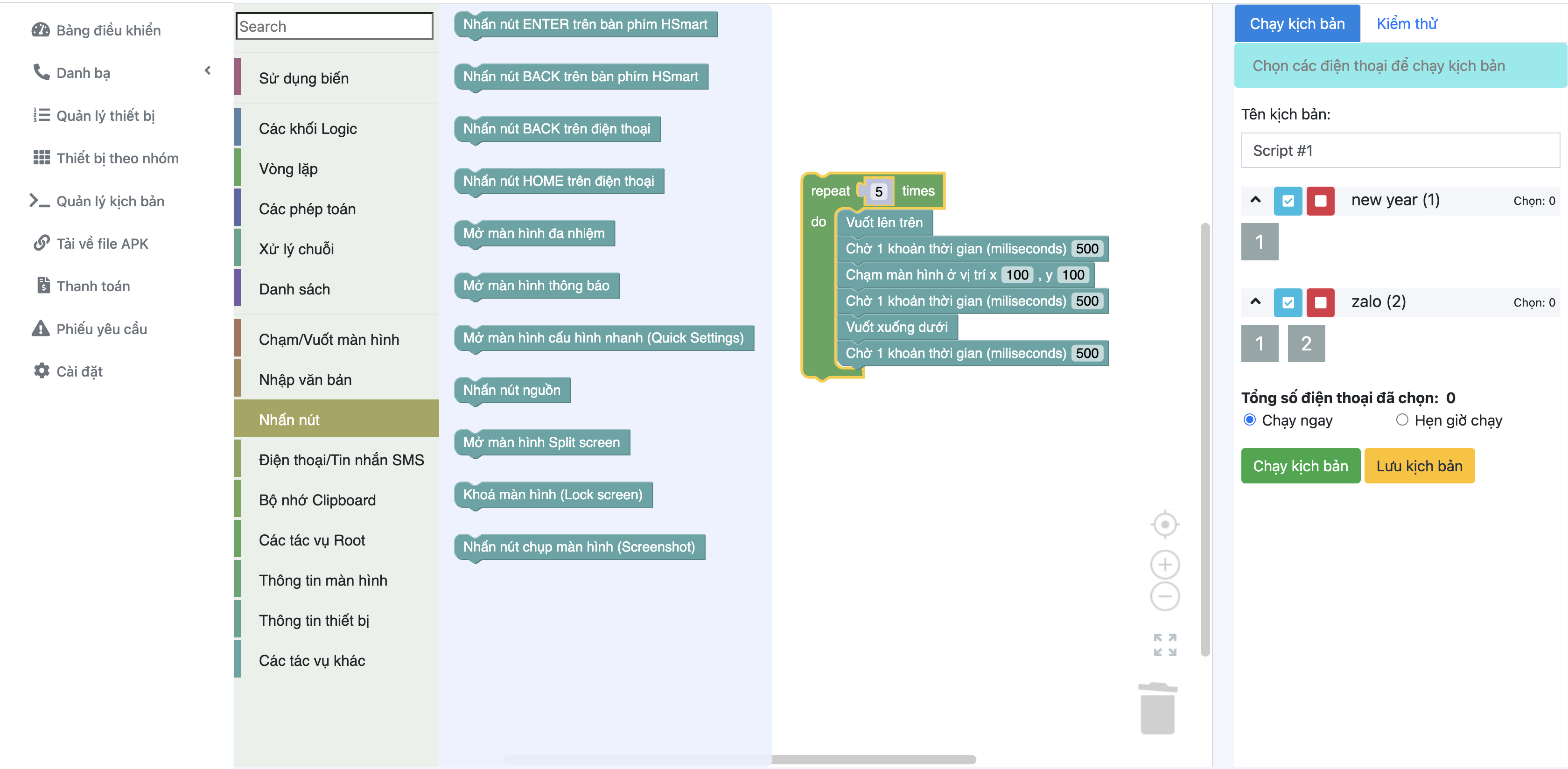 ♦ Thiết kế tự động hoá các tác vụ trên điện thoại theo nhu cầu, hỗ trợ người dùng tự tạo tác vụ mới cho điện thoại, box phonefarm.